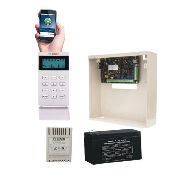 - Included in the alarm upgrade kit for the Bosch Solution 3000 is the control panel PCB, Metal cabinet, and code pad, battery, plug pack and IP module.